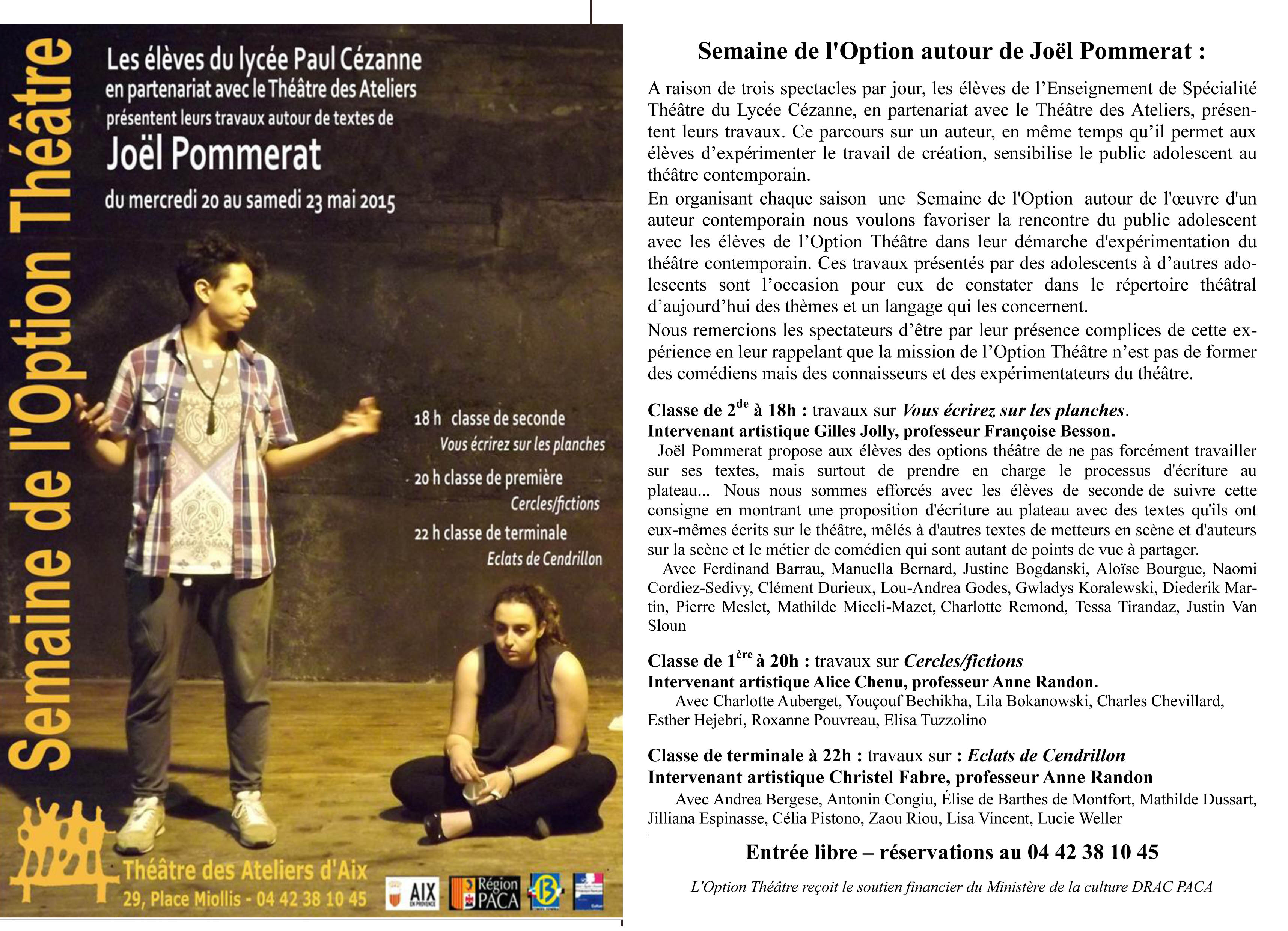 Renseignements : 04 42 38 10 45 – – theatredesateliers@yahoo.fr