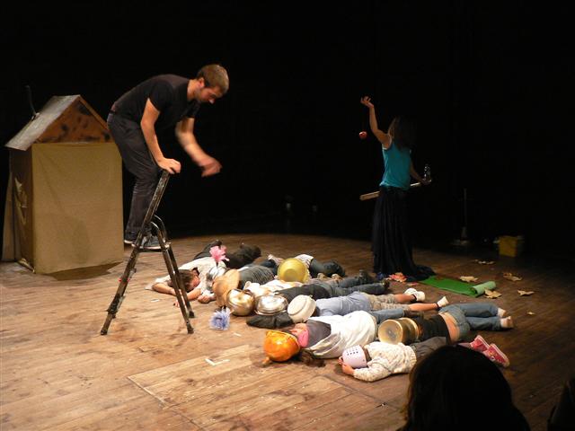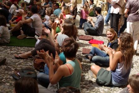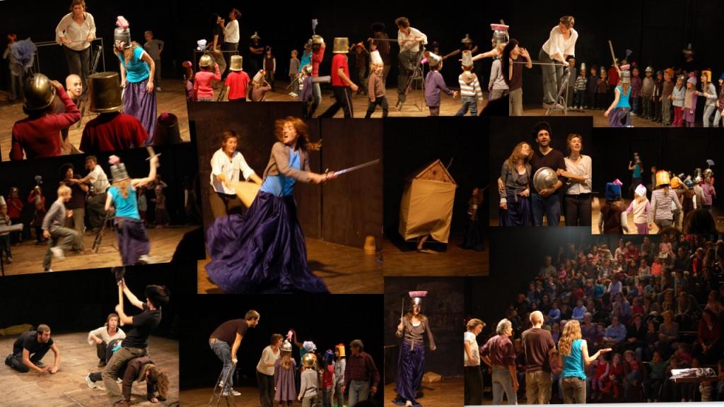des gradins pour prendre part à l’histoire. D’autres viendront plus tard prendre la relève pour aller encercler le château de la tsarine… Les enfants se pressent pour descendre sur le plateau et se prennent au jeu avec bonheur ! Leurs cris de guerre terroriseront la tsarine et le traitre Fédor, bien obligé d’avouer son forfait et ses mensonges à sa mère…
