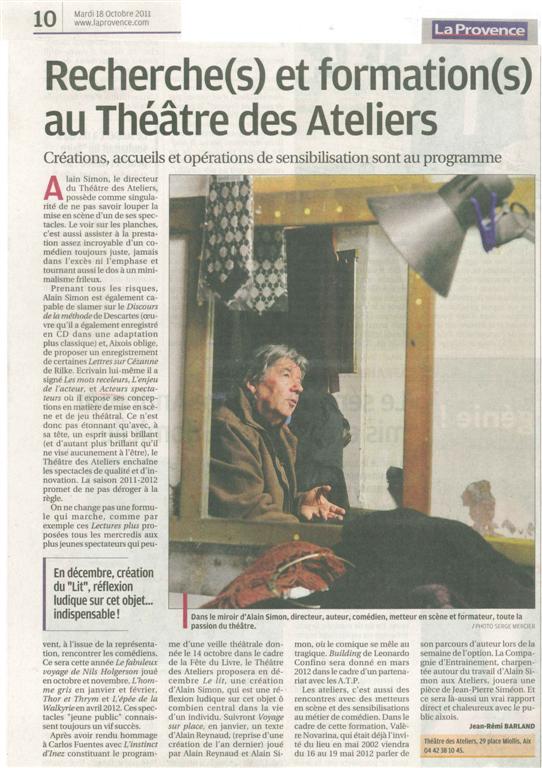 La lecture a eu lieu le 19 octobre au théâtre des Ateliers, Aix-en-Provence