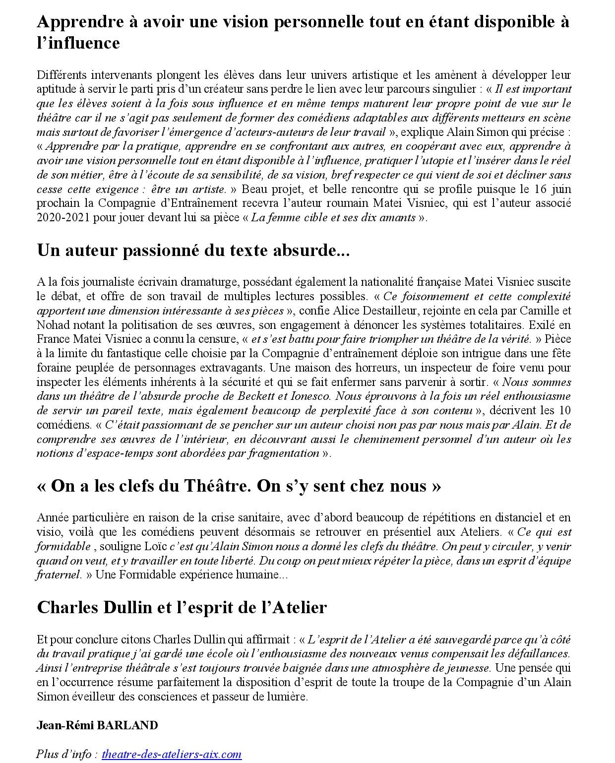 Directeur artistique et pédagogique : Alain Simon, comédien, metteur en scène, pédagogue, directeur artistique du Théâtre des Ateliers d’Aix-en-Provence.